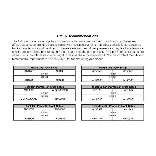 Bilstein Shocks AK1052 – Gas charged stock mount rear racing shock with 112# compression and 324# rebound linear valving.