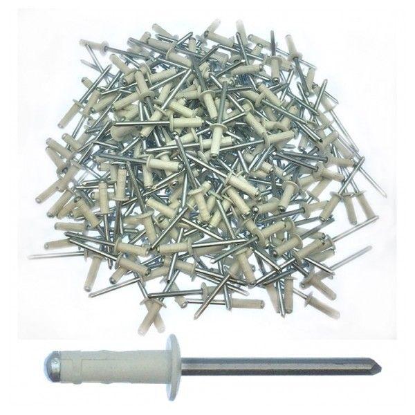 Capital Motorsports MGR316-SW – White painted aluminum rivet with steel mandrel 3/8″ diameter head with 3/8″ maximum grip range. 250 per box. Multi grip rivets have multiple small indented grooves in the shank so they pull up tighter. The bubbled body is more suitable for slightly oversized or irregular holes.